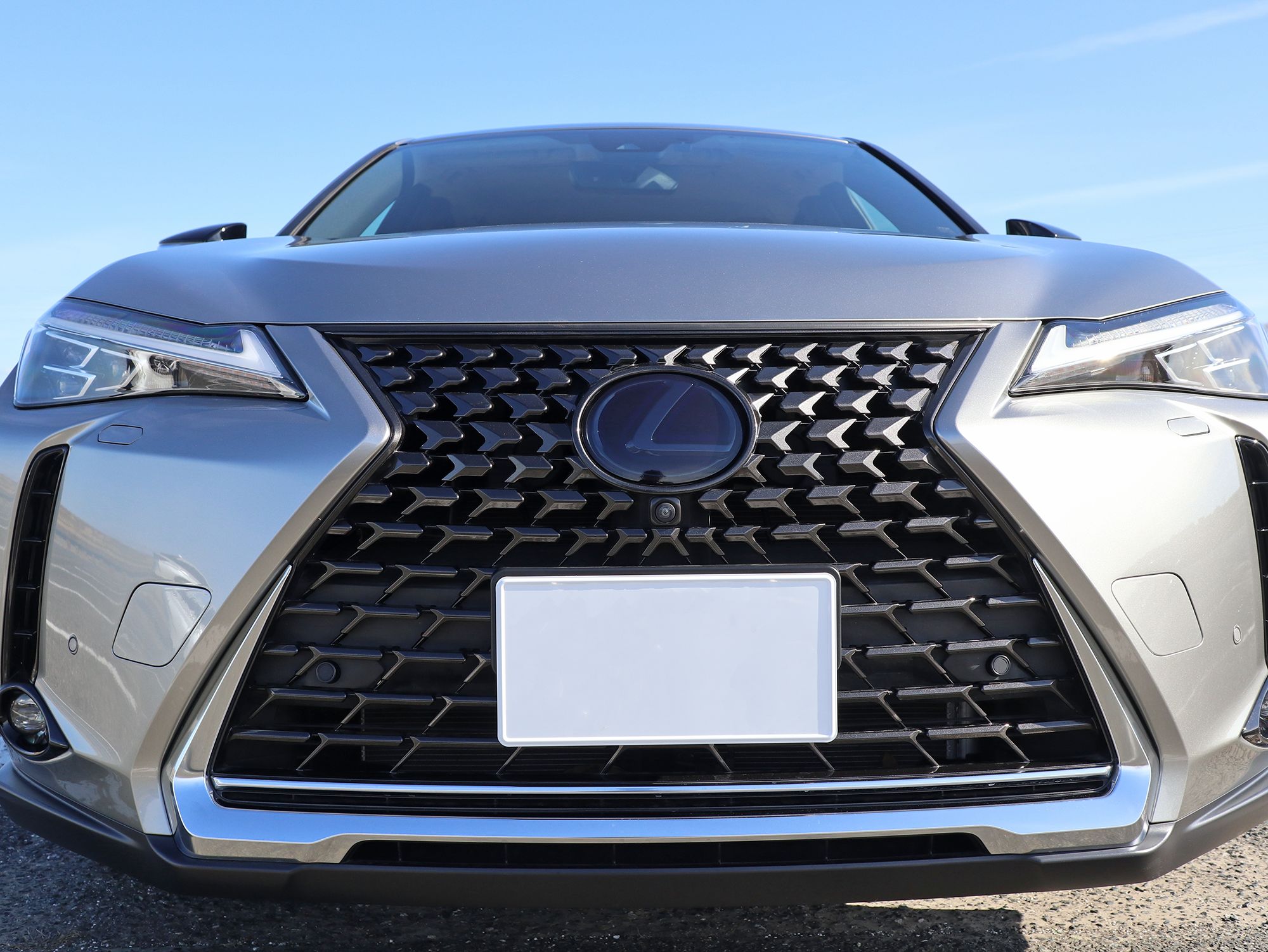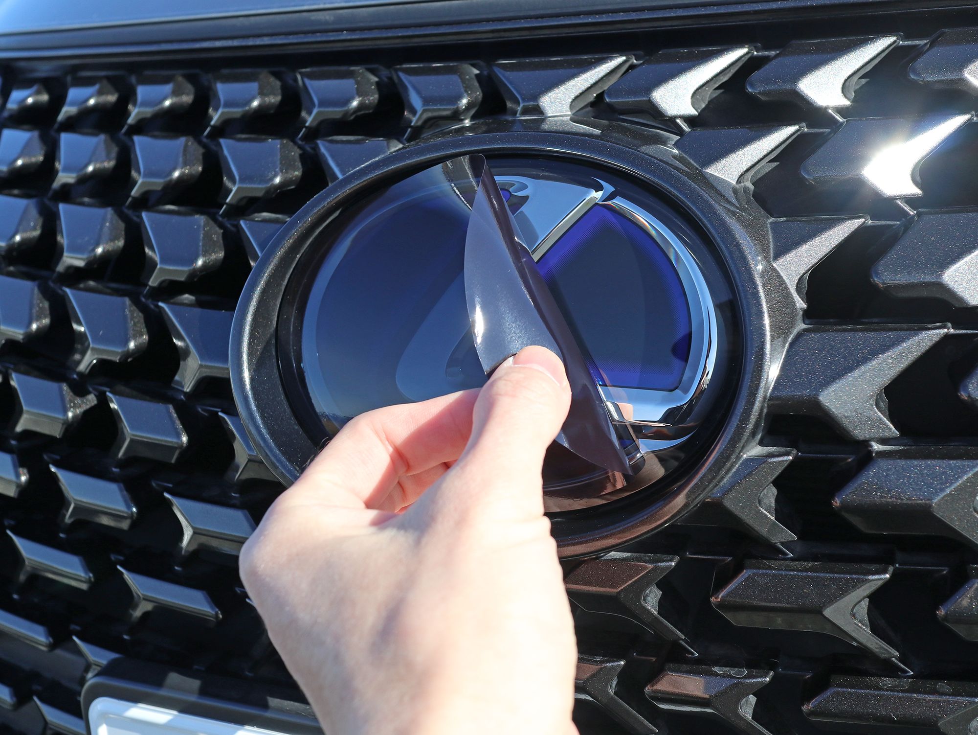 車種別情報:レクサス UX200/UX250h/UX300h/UX300e MZAA10/MZAH10/MZAH11/MZAH15/MZAH16/KMA10 純正フロントエンブレム用 スモークフィルム (スモーク透過率20%.フィルムの特性や実験の結果プリクラッシュセーフティ/Lexus Safety System +に影響はを及ぼさないと考えておりますがリスクを完全に否定できるものでは御座いません)